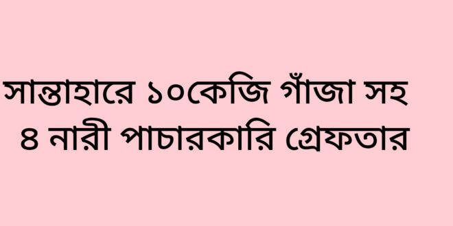 সান্তাহার রেলওয়ে থানা পুলিশ সূত্রে জানা গাছে, রোব বা র দুপুরে কুড়িগ্রাম থেকে ছেড়ে আসা ঢাকাগাী আন্তঃ নগ র কুড়িগ্রাম এক্সপ্রেস ট্রেন সান্তাহার রেলওয়ে জংশন স্টেশনের ৩ নম্বর প্ল্যাটফর্মে পুঁছিলে গোপন সংবাদের ভি ত্তিতে সান্তাহার রেলওয়ে থানা পুলিশ যাত্রীদের বহন করা ব্যাগ তল্লাশি কালে ৫ কেজি করে পলেখেনি মোড়ানো দু টি পোটলা মোট ১০ কেজি গাঁজা সহ ৪ নারী গাঁজা পাচা রকারী গ্রেফতার করেছে।