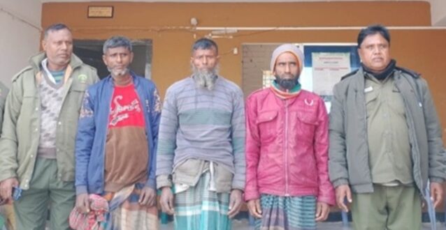 এর আগে রোববার সন্ধ্যায় পশ্চিম সুন্দরবন সাতক্ষীরা রেঞ্জের আওতাধীন পুষ্পকাটি অভয়ারণ্যের জলঘাটা খাল থেকে তাদের আটক করা হয়।