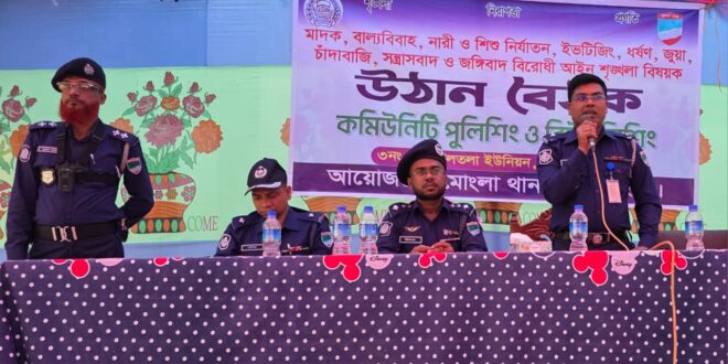 আইনশৃঙ্খলা রক্ষা ও জনসচেতনতা বৃদ্ধির লক্ষ্যে বাগে রহাটের মোংলা উপজেলার সোনাইলতলা ইউনিয়নে এক আইনশৃঙ্খলা বিষয়ক উঠান বৈঠক অনুষ্ঠিত হয়েছে।