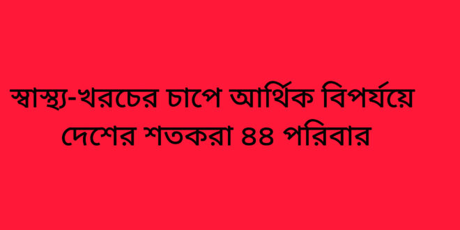 বিশ্ব স্বাস্থ্য সংস্থা (ডব্লিউএইচও) ও বিশ্বব্যাংকের সর্বশেষ হিসাব বলছে, চিকিৎসা ব্যয় মেটাতে গিয়ে বাংলাদেশের ৪৪ শতাংশ পরিবার আর্থিক বিপর্যয়ের মুখে পড়ে।