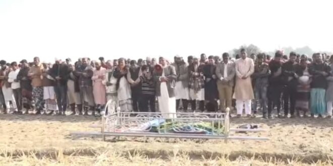 শোকস্তব্ধ মা ছুটে যেতে চাইলে স্বজনরা তাকে ধরে রা খেন; কিন্তু কারোরই পক্ষে থামানো সম্ভব হয়নি সেই বুকফাটা কান্না। জানাজার ইমামতি করেন কাজী মাওলানা মিজানুর রহমান।