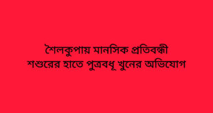 মফিজুল ইসলাম শৈলকুপা (ঝিনাইদহ) : ঝিনাইদহের শৈলকুপা উপজেলার পাইকপাড়া গ্রামে মান সিক প্রতিবন্ধী শশুরের হাতে লিমা খাতুন (২৮) নামের এক গৃহবধূ খুন হয়েছে বলে অভিযোগ উঠেছে। আজ রোববার (২৬ অক্টোবর) ভোর পাঁচটার দিকে নিজ বাড়ি তে এ মর্মান্তিক ঘটনা ঘটে। নিহত লিমা খাতুন ওই গ্রামের আব্দুর রবের স্ত্রী এবং দুই …