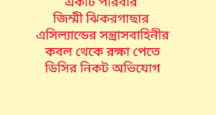 Read More »একটি পরিবার জিম্মী ঝিকরগাছার এসিল্যান্ডের সন্ত্রাসবাহিনীর কবল থেকে রক্ষা পেতে ডিসির নিকট অভিযোগ