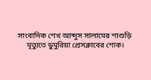 Read More »সাংবাদিক শেখ আব্দুস সালামের শাশুড়ি মৃত্যুতে ডুমুরিয়া প্রেসক্লাবের শোক