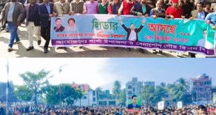 শার্শা উপজেলা প্রতিনিধিঃ তারেক জিয়া আসছে বাংলাদেশ হাসছে’ ”লিডার আস ছে” সহ বিভিন্ন স্লোগানে মুখরিত যশোর এর স্থল বন্দর বেনাপোল শহর। মঙ্গলবার সকাল সাড়ে ১১ টার সময় বেনাপোল বলফিল্ড থেকে শার্শা -১ আসন এর ধানের শীষের মনোনায়ন প্রাপ্ত প্রার্থী মফিকুল হাসান তৃপ্তির নেতৃত্বে হাজার হাজার নারী-পুরুষের হাতে ছিল তারেক জিয়া,খালেদা …