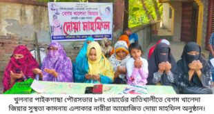 পাইকগাছা (খুলনা) প্রতিনিধিঃ পাইকগাছায় নারীদের উদ্যোগে সাবেক প্রধানমন্ত্রী ও বিএনপির।চেয়ারপার্সন বেগম খালেদা জিয়ার সুস্থতা কামনায় দোয়া মাহফিল অনুষ্ঠিত।হয়েছে। ১৮ ডিসেম্বর বৃহস্পতিবার বিকেলে পৌরসভার ৮নং ওয়া র্ড বাতিখালীতে উপজেলা বিএনপির সাবেক সাধারণ সম্পাদক এসএম এনামুল হকের নির্দেশনায় এলাকার নারীরা এ দোয়া মাহফিল এর আয়োজন করে। পৌরসভা মহিলা দলের নেত্রী সুলতানা লাবনীর …