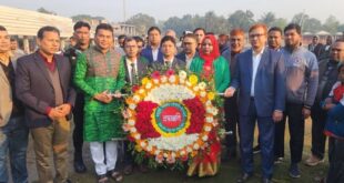 মনিরামপুর প্রতিনিধি:মহান বিজয় দিবস উপলক্ষ্যে কেন্দ্রীয় শহীদ মিনারে পুষ্পস্তবক অর্পণের মাধ্যমে মহান মুক্তিযুদ্ধে আত্মোৎসর্গকারী শহীদদের প্রতি গভীর শ্রদ্ধা নিবেদন করেছেন মণিরামপুর রিপোর্টার্স ক্লাবের সদস্য বৃন্দ। মঙ্গলবার (১৬ ডিসেম্বর) মহান বিজয় দিবসের সকালে পুষ্পস্তবক অর্পণকালে উপস্থিত ছিলেন মণিরামপুর রিপোর্টার্স ক্লাবের প্রতিষ্ঠাতা সুমন চক্রবর্তী, প্রতিষ্ঠাতা সদস্য এস এম তাজাম্মুল, প্রতিষ্ঠাতা সদস্য নুর …