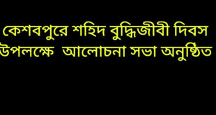 পরেশ দেবনাথ, কেশবপুর, যশোরঃ যশোরের কেশবপুরে শহিদ বুদ্ধিজীবী দিবস উদযাপন উপলক্ষে শহিদদের স্মরণে আলোচনা সভা অনুষ্ঠিত হয়েছে। উপজেলা প্রশাসনের আয়োজনে কেশবপুর পাইলট মাধ্য মিক বালিকা বিদ্যালয় চত্বরে (যুদ্ধ ভাসান পাদদেশে) ওই আলোচনা সভা অনুষ্ঠিত হয়। আজ রোববার (১৪ ডিসেম্বর-২৫) সকালে অনুষ্ঠানে অনু ষ্ঠানে উপজেলা নির্বাহী অফিসার রেকসোনা খাতুন-এর সভাপতিত্বে এবং …