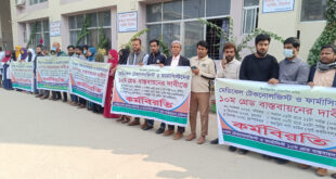 ঝিনাইদহ প্রতিনিধি: ১০ম গ্রেড বাস্তবায়নের দাবিতে ঝিনাইদহে অর্ধ-দিবস কর্মবিরতি পালন করেছেন মেডিকেল টেকনোলজিস্ট ও ফার্মাসিস্টরা। বুধবার সকালে ঝিনাইদহ সদর হাসপাতালে এ কর্মসূচির আয়োজন করে ১০ম গ্রেড বাস্তবায়ন পরিষদ জেলা শাখা। সকাল ৮টা থেকে বেলা ১২টা পর্যন্ত ৪ ঘন্টা কর্মবিরতি পালন করেন আন্দোলনকারীরা। সেসময় ডিপ্লোমা মেডিকেল টেকনোলজিস্ট ও ফার্মাসি স্টে কর্মরত …