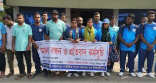 পরেশ দেবনাথ, কেশবপুর, যশোর যশো র কেশবপুরের শারীরিক শিক্ষা কলেজের শিক্ষা র্থীরা প্রাথমিক বিদ্যালয়ে শারীরিক শিক্ষক পদ পুনর্ব হালের দাবিতে মানববন্ধন ও প্রতিবাদ কর্মসূচি পালন করেছে। যশোর-চুকনগর সড়কের কেশবপুর প্রেসক্লাবের সামনে ওই মানববন্ধন ও প্রতিবাদ কর্মসূচির আয়োজন করা হয়। শুক্রবার (০৭ নভেম্বর-২৫) মানববন্ধনে বক্তব্য দেন, কেশ বপুর সরকারি ডিগ্রি কলেজের …