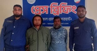 পোংলা (বাগেরহাট) প্রতিনিধি : বাগেরহাটের রামপাল উপজেলায় সংঘটিত একটি চাঞ্চল্যকর ডাকাতি মামলার চার মাস ধরে পলাতক থাকা দুই আসামিকে আটক করেছে র্যাব–৬। শনিবার গভীর রাতে গোপন সংবাদের ভিত্তিতে পরিচালি ত অভিযানে রামপালের গৌরম্ভা এলাকা থেকে পৃথকভা বে তাদের আটক করা হয়। আটককৃতরা হলেন—মো. নান্নু শেখ (৪৭), পিতা আজগার আলী শেখ, …