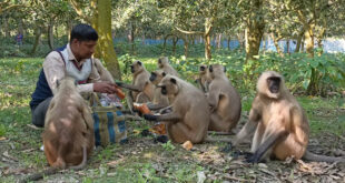 শীতে যুবুথুবু ঘরমুখো মানুষ;মহেশপুরে খাবার সংকটে কালোমুখো হনুমান