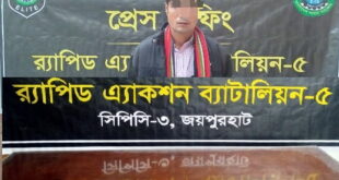 আব্দুল মতিন, পত্নীতলা (নওগাঁ) প্রতিনিধি – পত্নীতলায় উপজেলা সদর নজিপুর পৌরসভা এলাকা থেকে নেশা জাতীয় মাদকদ্রব্য ট্যাপেন্টাডল ট্যাবলেট সহ বুধবার বিকেলে এক জন মাদক ব্যবসায়ীকে গ্রেফতার করেছে র্যাব-৫। র্যাব-৫ এর প্রেস বিজ্ঞপ্তি থেকে জানাগেছে, র্যাব প্রতিষ্ঠার সময় থেকেই দেশের সার্বিক আইন-শৃঙ্খলা পরিস্থিাতি সমুন্নত রাখার লক্ষ্যে সব ধরনের অপরাধীকে আইনের আওতায় …