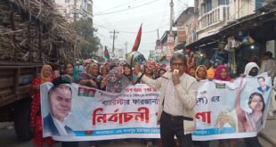 এস ইসলাম,লালপুর (নাটোর) নাটোর। নাটোরের লালপুরে বিএনপির ধানের শীষের প্রার্থী ব্যারি ষ্টার ফারজানা শারমিন পুতুলের পক্ষে উপজেলার ১০টি ইউনিয়ন ও একটি পৌরসভায় গন মিছিল অনুষ্ঠিত হয়েছে। রবিবার (১৬ নভেম্বর) বিকালে এই গনমিছিলে হাজার হাজার নারী পুরুষ বৃদ্ধ শিশু সবাই অংশগ্রহণ করে। ১নং লালপুর ইউনিয়ন বিএনপির গনমিছিলে উপস্থিত ছিলেন লালপুর উপজেলা …