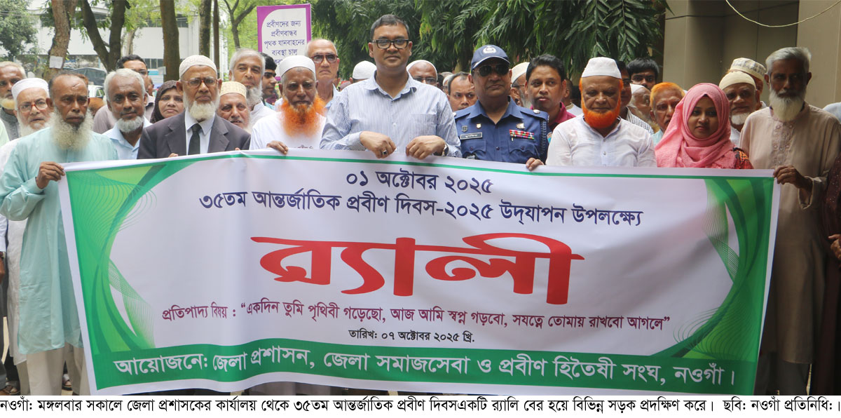 মামুন পারভেজ হিরা,নওগাঁ ঃ ‘একদিন তুমি পৃথিবী গড়েছ আজ আমি স্বপ্ন গড়বো, সযতেœ তোমায় রাখবো আগলে’ এই প্রতিপা দ্য নিয়ে নওগাঁয় পালিত হয়েছে ৩৫তম আন্তর্জা তিক প্রবীণ দি বস। মঙ্গলবার সকালে জেলা প্রশাসন, জেলা সমাজসেবা কার্যা লয় ও প্রবীণ হিতৈষী সংঘের আয়োজনে জেলা প্রশাসকের কার্যালয় থে কে একটি র্যালি বের …