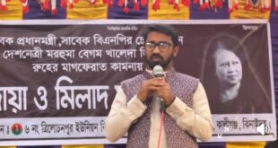 হাবিব ওসমান, কালীগঞ্জ (ঝিনাইদহ) প্রতিনিধি: ঝিনাইদহের কালীগঞ্জ উপজেলার জামাল ও কোলা ইউনিয়নে যৌথভাবে সাবেক প্রধানমন্ত্রী ও বিএনপির চেয়ারপারসন বেগম খালেদা জিয়ার রুহের মাগফিরাত কামনায় কোরআন খতম, দোয়া মাহফিল ও আলোচনা সভা অনুষ্ঠিত হয়েছে। বৃহস্পতিবার (১৫ জানুয়ারি) বিকেল ৩টায় এ কর্মসূচির আয়োজন করা হয়। আলোচনা সভায় সভাপতিত্ব করেন উপজেলা বিএনপির সাবেক …